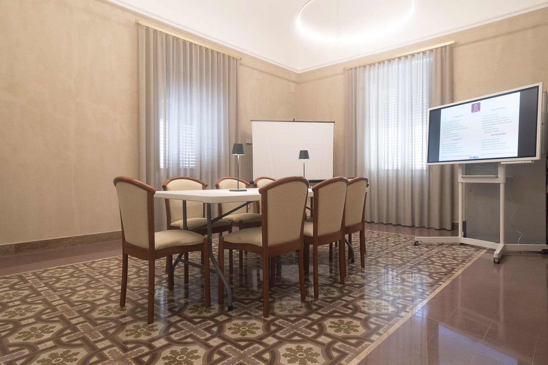 El hotel fue construido dentro de un antiguo palacio noble, de principios del siglo XX, del que aún conserva algunas peculiaridades, entre ellas la espléndida escalera de estilo Liberty y algunos suelos de cementina.