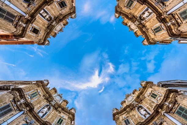 Quattro Canti o Piazza Villena, piazza ottagonale all'incrocio dei due principali assi viari della città, Via Maqueda e il Cassaro (oggi Corso Vittorio Emanuele). Accanto avrete modo di ammirare la splendida